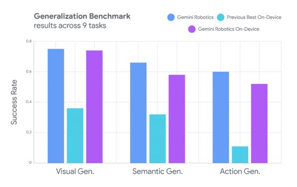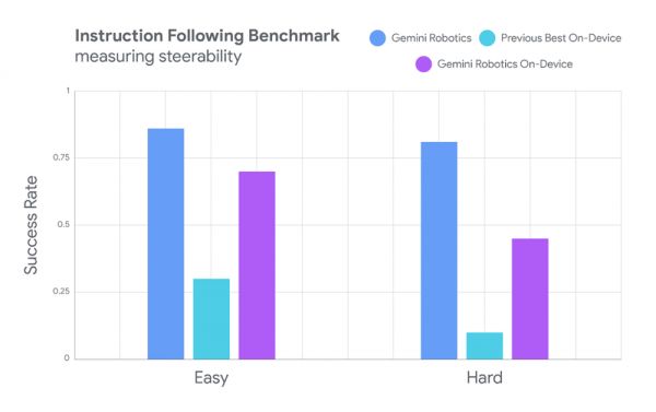 在更具挑战性的分布式任务或复杂的多步骤指令执行中,Gemini Robotics On-Device的表现依然优于目前其他本地运行的替代方案。