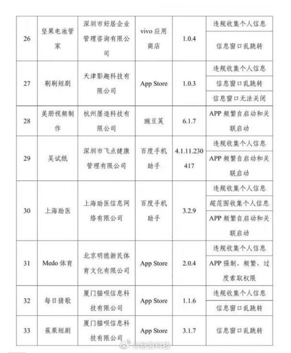 【工信部:#57款App侵害用户权益被通报#】根据中央网信办、工业和信息化部、公安部、市场监管总局等四部门联合发布的《关于开展 2025 年个人信息保护系列专项行动的公告》,依据《个人信息保护法》《网络安全法》《电信条例》《电信和互联网用户个人信息保护规定》等法律法规,工信部对 App、SDK 违法违规收集使用个人信息等问题开展治理。近期,经组织第三方检测机构进行抽查,共发现 57 款 App 及 SDK 存在侵害用户权益行为,现予以通报。上述 App 及 SDK 应按有关规定进行整改,整改落实不到位的,工信部将依法依规组织开展相关处置工作。