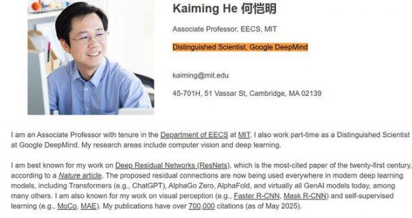 智东西6月26日报道,近日,计算机视觉大牛、MIT教授何恺明入职谷歌DeepMind,他在个人主页上更新了自己的最新职位——谷歌DeepMind杰出科学家(兼职)。同时,何恺明也仍然保留了MIT电气工程与计算机科学学院(EECS)的终身教职。