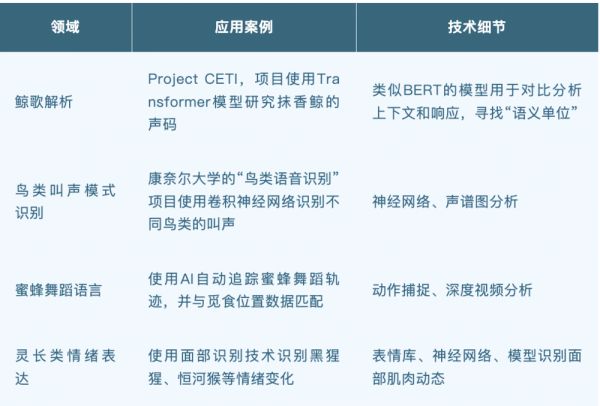 ▷表1:AI赋能动物语言研究