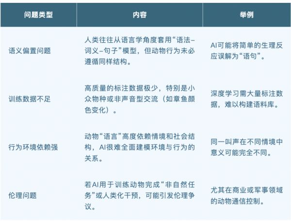 ▷表2:用AI解析动物语言的限制