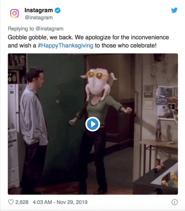随后,Instagram也在Twitter上宣布全面恢复正常。