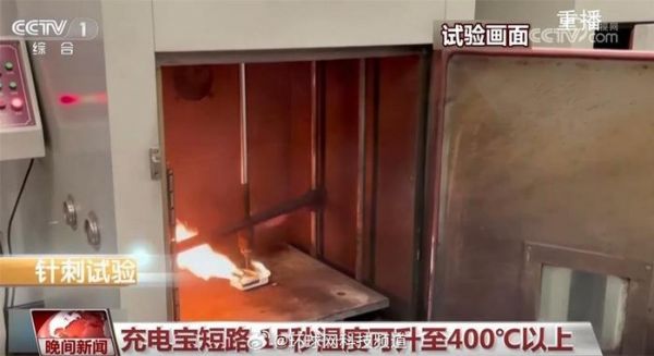充电宝短路15秒升温至400℃以上,水是最佳灭火方式