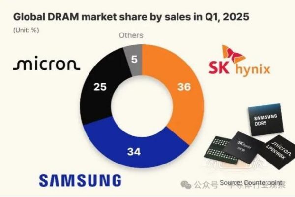 在DRAM市场三大巨头三星电子、SK海力士和美光中,无疑,HBM市场份额已成为盈利能力的关键差异化因素。