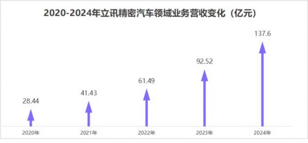 2024年,立讯精密汽车领域的业务营收,已经达到137.6亿。