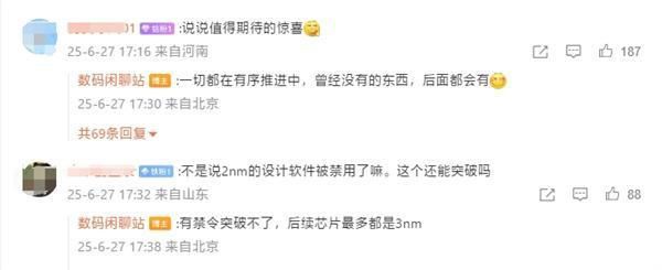 但需要注意的是,博主透露目前EDA禁令突破不了,后续芯片最多都是3nm。