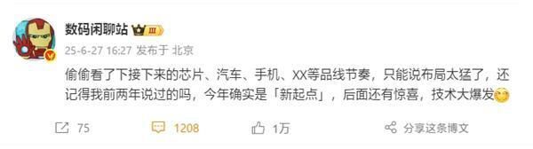 快科技6月28日消息,据数码闲聊站爆料,接下来小米的芯片、汽车、手机等产品线布局非常猛,后面会有技术大爆发。