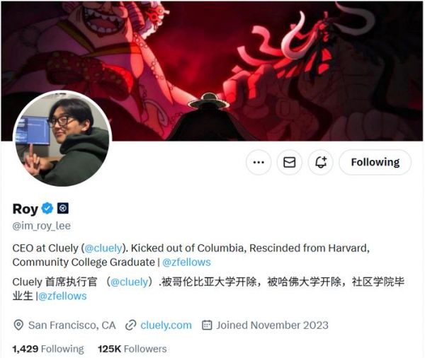 这位 CEO 的在 X 上的介绍,直接注明被哥伦比亚大学开除,被哈佛大学开除,可谓是非常具有个性。