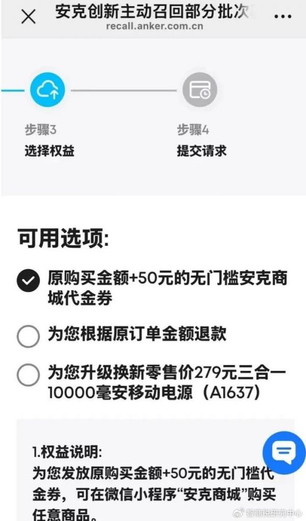 潘哥了解到,安克对于此次召回,给出了三种方案可选: