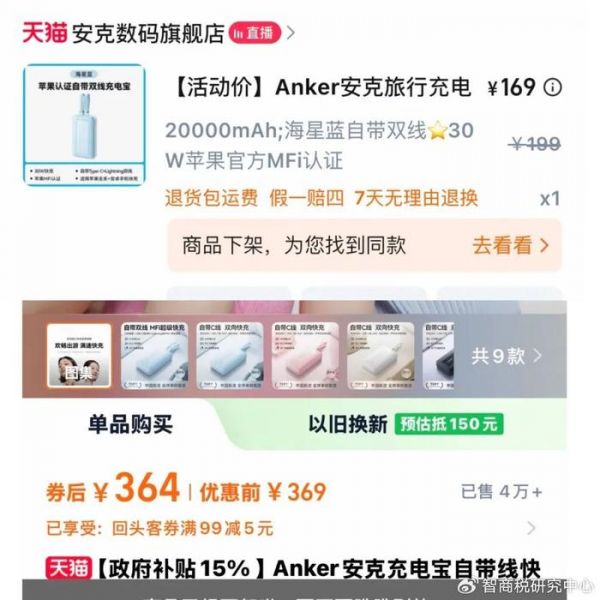 第三,将原有的不达标充电宝,换新成安克A1637充电宝,折合价格为279元。
