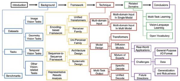 正因如此,在这个多模态模型席卷科研与工业的新时代,回顾并总结纯视觉范式下的通用视觉模型研究仍然是一件十分有意义的事情。清华大学自动化系鲁继文团队最近发表于 IJCV 的综述论文系统梳理了该方向的研究进展,涵盖输入统一方法、任务通用策略、模型框架设计、模型评测应用等内容,希望能为未来视觉模型的发展提供参考与启发。
