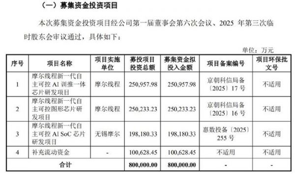 摩尔线程在招股书中说,发行4444.7580万股,占发行后总股本不低于10%,拟募资80亿,除了留下10亿补充流动资金外,其余全部投入芯片研发项目。