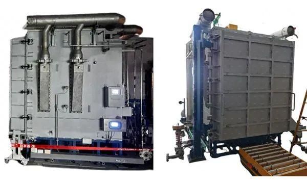 “信诺先端”选择跳出常规辊道窑设备的思路,从窑炉结构、加热布局、物料输运、进排气机构四个方面进行创新:在窑炉结构上,将加热器和匣钵的布局,由辊道窑的水平方向改为竖直方向,往高处堆叠;加热布局也因此调整,改为垂直安装加热器,使得炉腔结构更为紧凑,炉腔空间利用率从辊道窑的18%提高到50%,有利于节能;物料输运上,将辊棒替换成载重能力更大的台车,可以大幅提升产能并避免断棒、拱窑等设备运行风险;在进排气机构上,通过专利技术提高工艺气体进入匣钵的效率以及炉腔内废气的捕捉效率。
