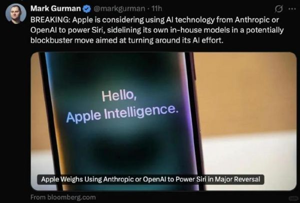 而在近日,Gurman再次透露了新Siri的更多信息。他表示,苹果正重新评估其AI发展策略,甚至考虑放弃自研AI大模型。