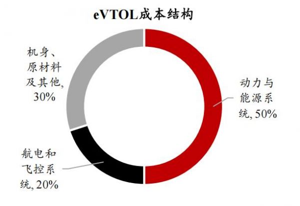 eVTOL中价值量最高的是三电环节,动力与能源系统(电机、电池和电控)的成本占比能达到50%。三电技术脱胎于纯电汽车,近些年国内新能源车的发展,为eVTOL落地提供坚实技术底座。
