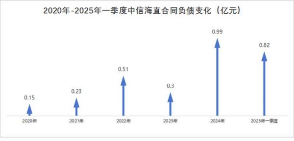 国内的海上石油开采业务,大多集中在中海油及其下属公司,2024年中海油又开辟了海上超深层油气勘探新领域,预计2025年油气产量超8000万吨。背靠中海油,2025年一季度中信海直合同负债为0.82亿,同比增速超260%。