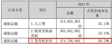 除了基本的房屋建筑物,直升机、运输设备和飞行设备,是公司固定资产的主要构成。年报显示,中信海直的直升机年折旧率在4.75%-6.33%。2024年其直升机折旧金额高达4.75亿元,的确不是小数额。