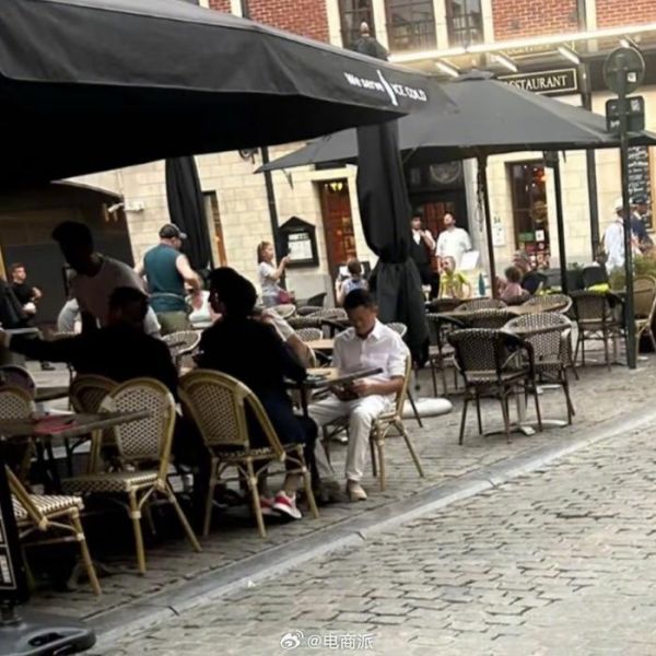 偶遇马云,在比利时大广场低着头看手机,很专注。