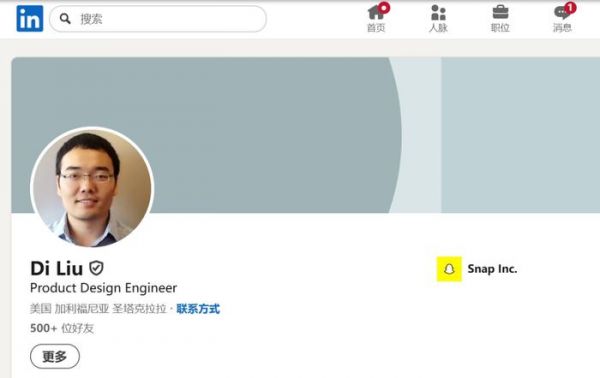 Di Liu的领英个人资料显示,他于2010年获得北京航空航天大学工学学士学位,2013年获得纽约州立大学石溪分校机械工程硕士学位。2017年至2024年,他在苹果公司先后担任高级硬件开发工程师、高级系统产品设计工程师,主要从事Vision Pro的显示器/光学元件、眼球/手部追踪传感硬件的研发。2025年1月至今,他在Snap担任产品设计工程师。