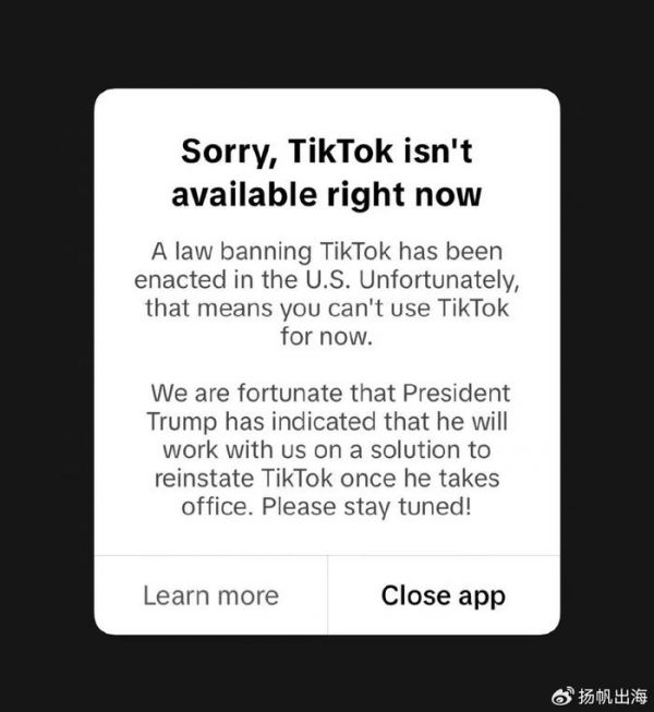 简单梳理下TikTok禁令的“一波三折”:2024年4月,拜登要求字节在270天之内将TikTok从自身的核心业务中剥离并出售给非中国企业,否则将从2015年1月19日起全面在美国封禁TikTok。1月19日,TikTok暂时关停在美服务,并宣布将于特朗普上任后合作找到恢复TikTok上架的解决方案。