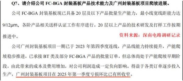 好在公司的各类订单正在逐步投入生产,使得广州封装基板项目在2025年第一季度亏损环比有所收窄。