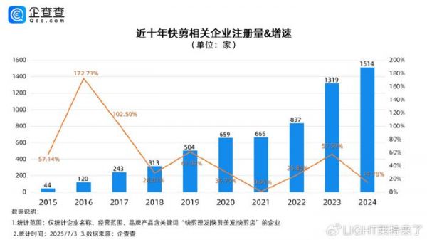 企查查数据显示,截至今年七月初,国内快剪相关现存企业已达5190家,仅2024年上半年注册量就达755家,同比增长8.2%。不起眼的十元剪刀,正悄然重塑美发行业的底层逻辑。