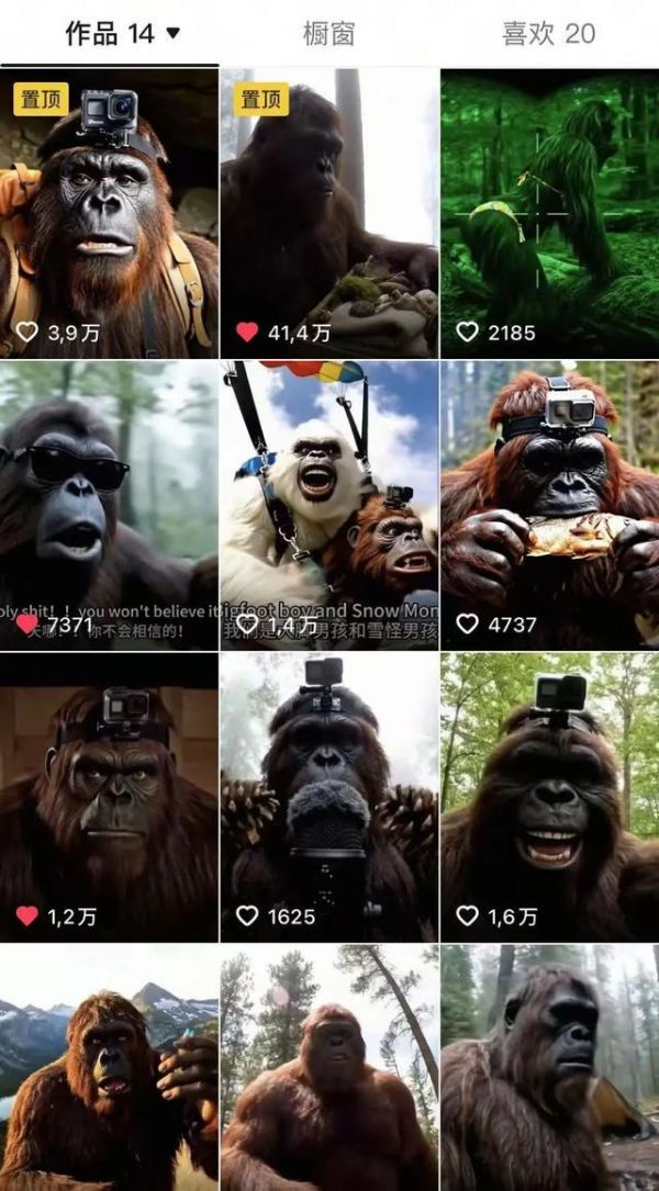 这还不是全部,一些专门拍大脚怪日常生活的视频,也莫名其妙有了点热度,最多的一条视频点赞量超过了40万。