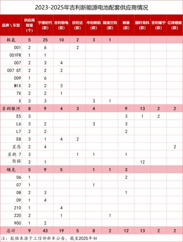 一方面,吉利拥有广泛的动力电池朋友圈。