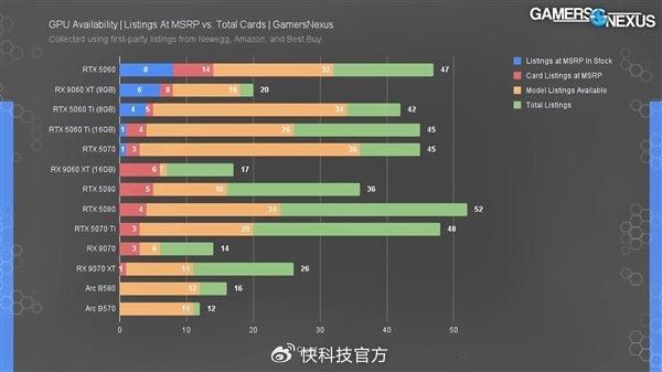 RTX 5060、RX 9060 XT 8GB、RTX 5060 Ti分别有多达14款、8款、5款型号以MSRP价格在售,大多数还都有现货。