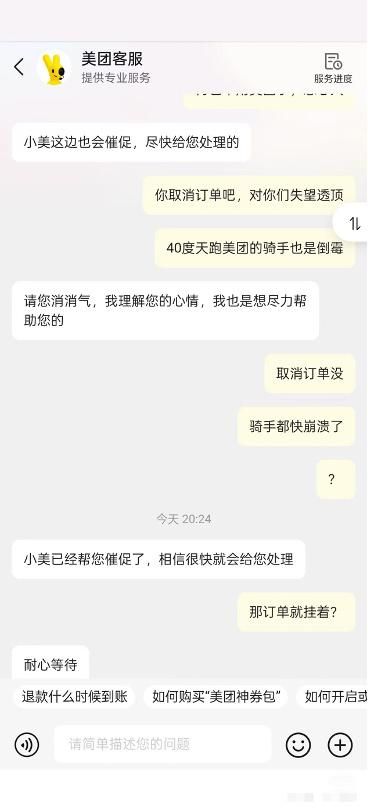 (图为博主与美团客服的交涉记录)