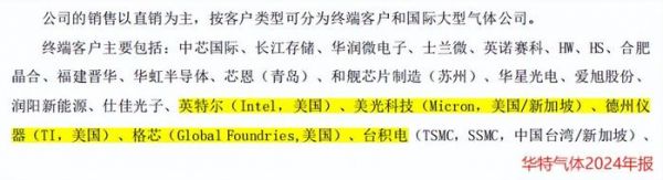 华特气体客户类型有两类,一是半导体大厂,二是国际大型气体公司。