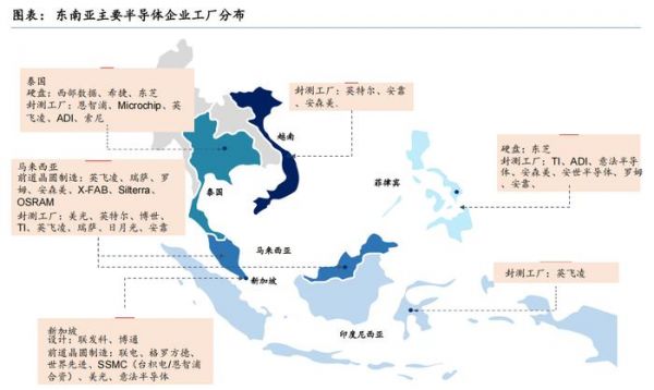 第一,东南亚本身就是半导体大厂的代工聚集地。下图中可见,英特尔、联发科、美光、英飞凌、日月光、安靠等公司,纷纷在东南亚建厂,公司进驻东南亚可形成产业链协同效应。