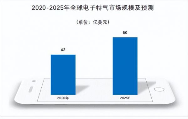 2020-2025年,全球电子特气市场规模有望从42亿美元增长至60亿美元。