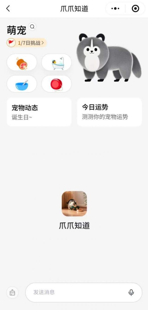爪爪知道是一个AI宠物产品,可以创建并领养一个AI宠物,类似QQ宠物的养成类小游戏。除了基础的对话外,用户还可以看到宠物动态以及每日运势,也能与其完成每日挑战,包括洗澡、吃饭等操作。