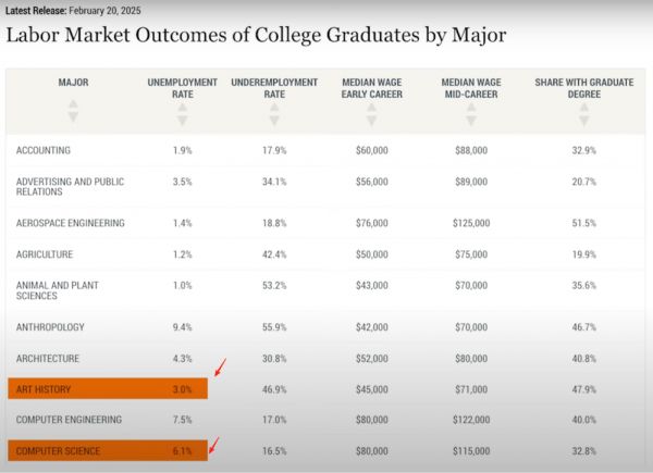 CS专业失业率竟高于艺术史专业?是的,6.1%对比3.0%,数据真实且魔幻。