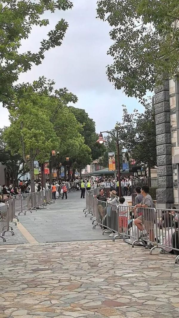 ▲7月8日晚上,上海迪士尼乐园门口排起长队。受访者供图上海迪士尼乐园上新,也经历了“拥挤”的一夜。