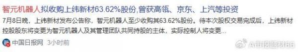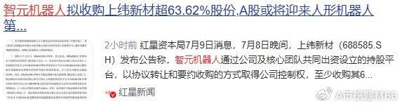 2025年7月8日晚,上纬新材公告称,智元机器人通过关联持股平台“智元恒岳”及一致行动人“致远新创合伙”,拟以协议转让和要约收购方式取得公司至少63.62%股份。交易完成后,智元机器人实控人将变更为创始人邓泰华(华为原副总裁、计算产品线原总裁),核心团队包括“华为天才少年”彭志辉(稚晖君)。