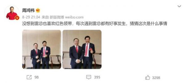 世事变幻犹如白云苍狗。就在“朝阳公园约架”十年之后,2022 年8月份,周鸿祎对雷军竖起了大拇哥,“没想到雷总也喜欢红领带,每次遇到雷总都有好事发生,猜猜这次是什么事情?”