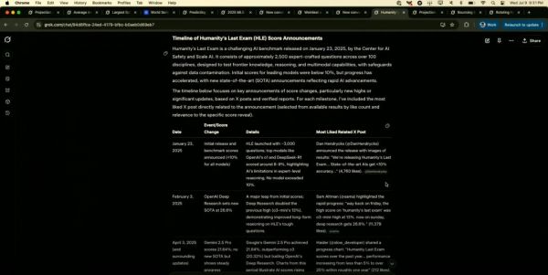 而在直播中,xAI 还进行了多项演示,包括实时抓取 X 平台上的帖子,整理出各家参与 HLE 测试的时间线,或是找出 xAI 团队中头像最古怪的那一个。既展示了 Grok 4 的能力,也强调了与 X 平台深度整合的优势。