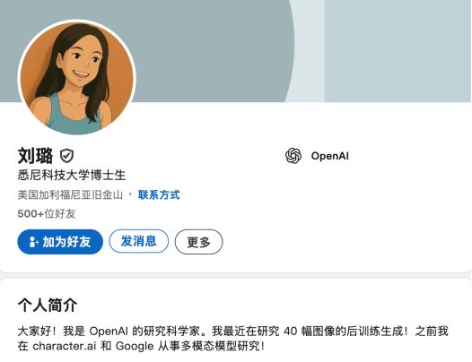 在离开OpenAI之前,她是4o图像生成团队的一员,经常在X和领英上分享和4o图像生成相关的内容,对工作表现出极大的热情。