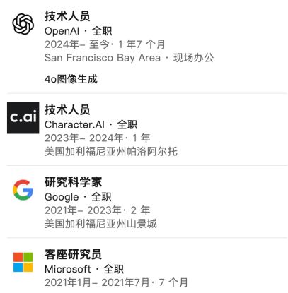读完博士之后,Lu Liu就北上美国,先后在微软、谷歌和Character.AI做研究员。