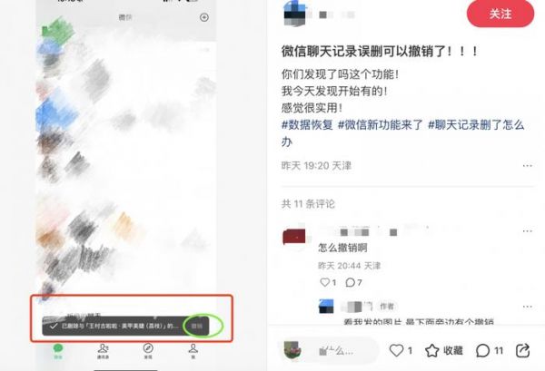近日,多位网友发帖称,微信聊天记录误删后可以撤销了,不怕手滑删错。