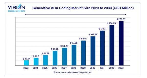AI编程是当前经过了市场验证的人工智能最先落地的领域。据研究机构Vision Research Reports预测,8年后,全球AI Coding市场将突破200亿美元。不过这可能都是一个偏保守的预测,因为仅拿中国市场来看,2023年中国软件和信息技术企业超3.8万家,累计完成软件收入12.3万亿,这都有可能转为AI编程的潜在市场空间。