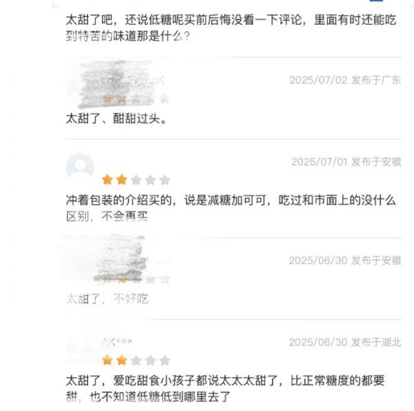 记者在商品评论区看到,这款好丽友派有300多人打出了差评,有消费者称:“看到低糖才买的,但实际吃起来太甜。”