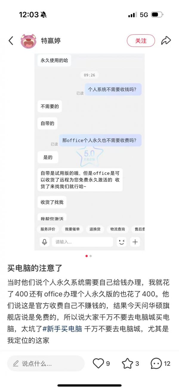 举个例子,在直营体系和电商体系如此发达的今年,仍有不少用户搞不清楚自己的真实需求,重演 20 年前被「奸商」诱导的剧情。上周我还在小红书上看到有人被「奸商」诱导,以现款产品的价格买到上一代的冷门电脑,甚至还被店员诱导,买下高价「正版系统」。要知道目前主流电脑已经标配正版的 Windows 电脑了,另外再买正版系统很可能就是直接给「奸商」送钱。