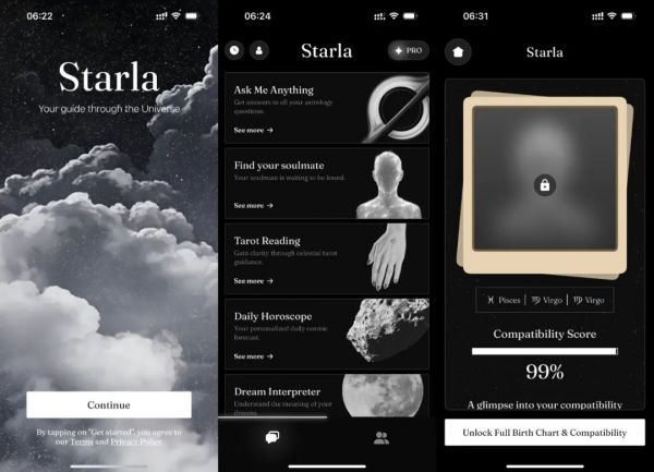 Starla/Astra非常聪明,它们并不“卖星座”,而是将占星术包装成一种“心灵游戏”——带点神秘、带点暧昧,还能当做内容晒出去。