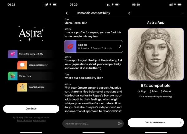 其深化了自然聊天的风格,例如会主动提问“我看到土星在你的第十宫——这是反思你雄心壮志的好时机。你面临一个重大决定吗?”对过境、上升星座等占星理论能灵活运用,特色功能有解梦、伴侣星盘测试。