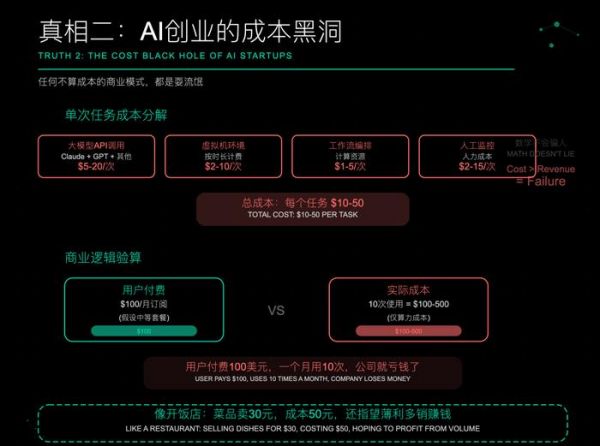 AI创业最大的陷阱就是成本失控。算力成本、人工成本、运营成本,每一项都可能成为压垮创业公司的最后一根稻草。