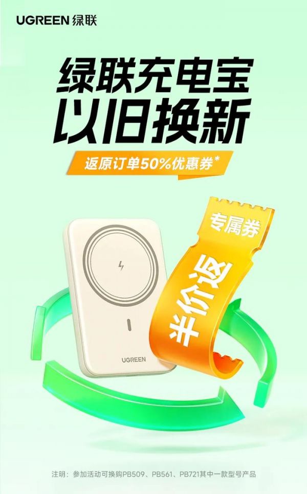 如绿联及时更换主力电芯供应商,同时还推出「充电宝以旧换新计划」。用户可凭 2022 年 8 月 1 日后购买的无 3C 标识旧产品,半价换购通过最新 3C 认证的 PB509 等型号,最高补贴 500 元。