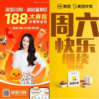 目前,阿里正试图再造一个全民参与的促销节日“超级星期六”——在未来100天内,消费者在每个周六都可以获得总额为188元外卖消费红包(红包总额度会根据每期活动有变化)。而美团方面也贴出宣传海报:周六,快乐继续。